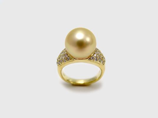 · Item Number: WR-01732 · 12mm Natural Color Golden South Sea Pearl Ring · 0.70tw Diamonds · 18KYG |