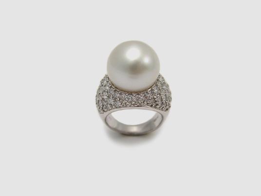 · Item Number: WR-01280 · 15mm White South Sea Ring · 3.30tw Diamonds · Platinum |