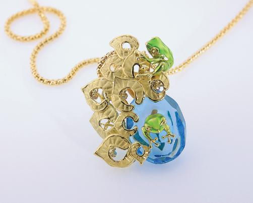 · Item Number: 500-1977 · “Two Frogs” · Blue Topaz · 0.07tw Diamonds · 18KYG |